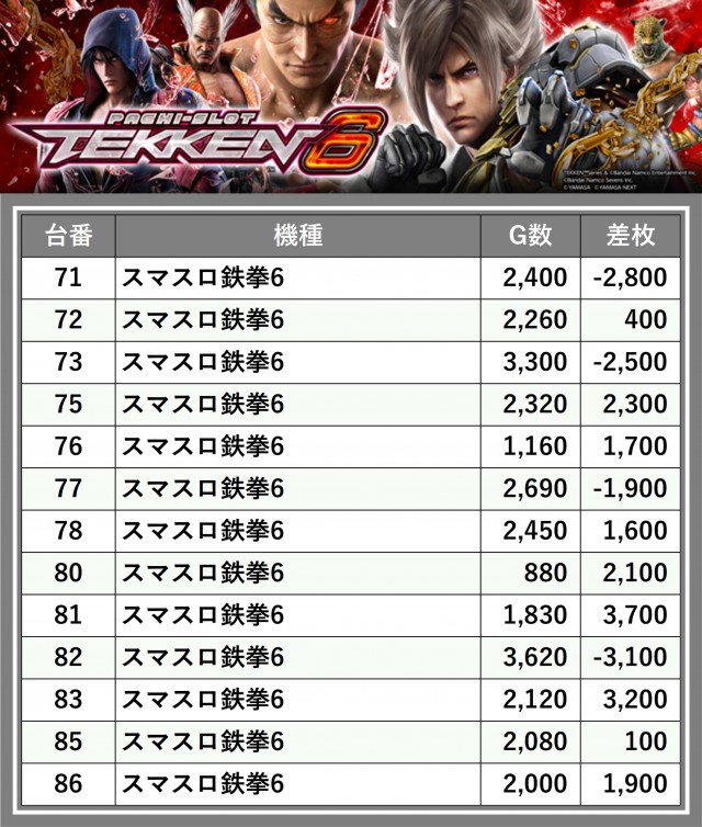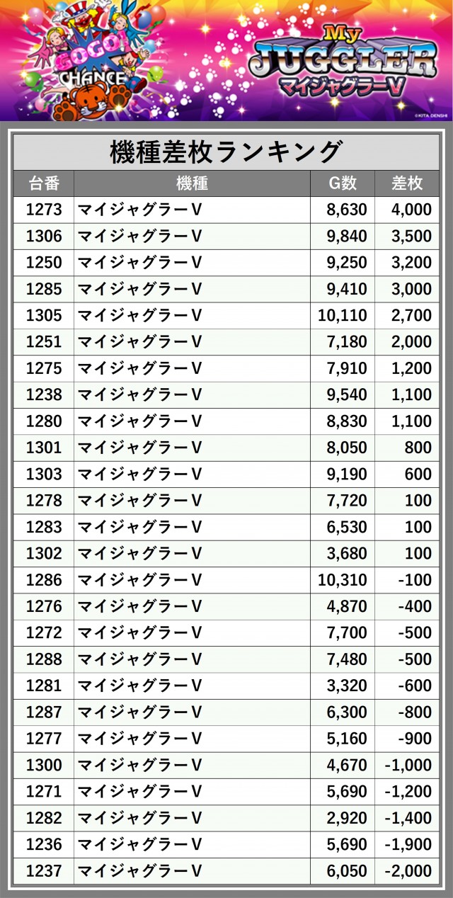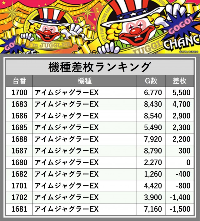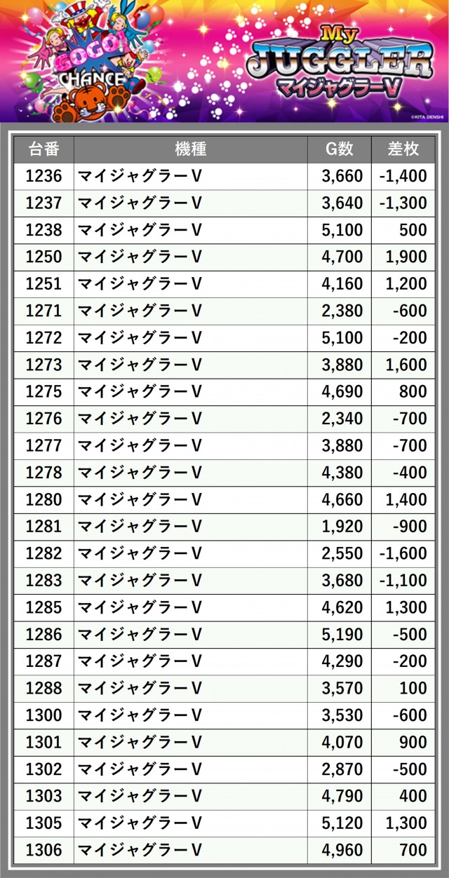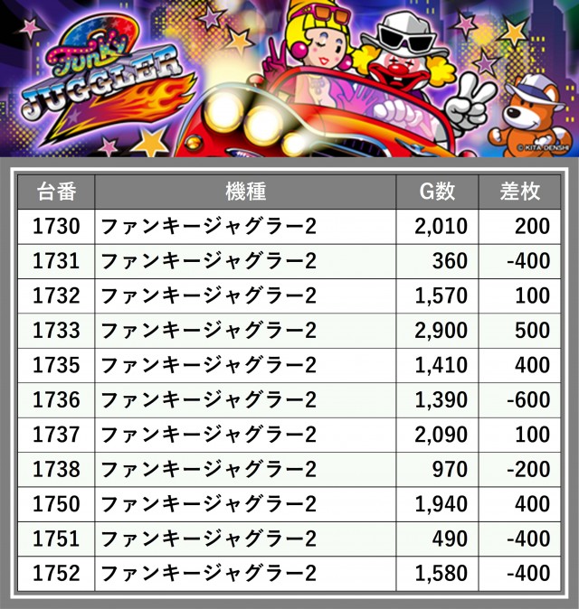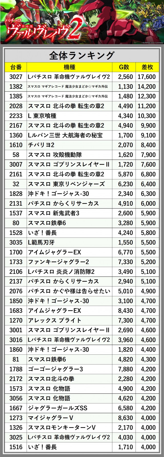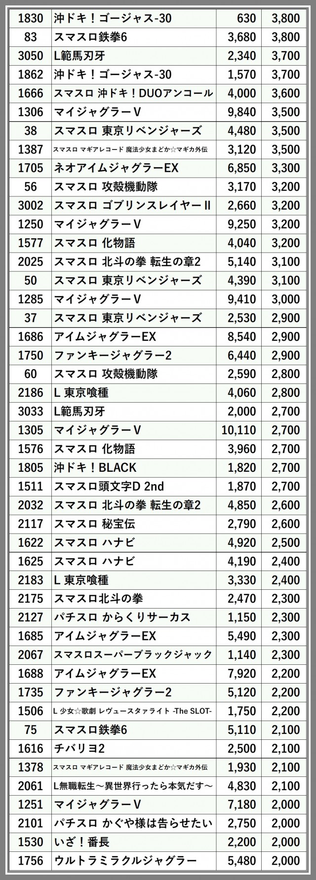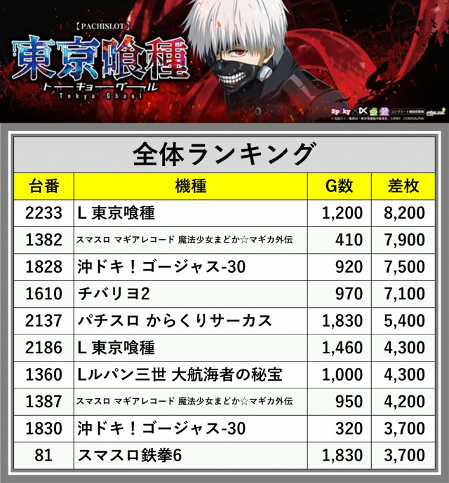 厳選された取材対象機種をはじめ、その他スロット全体から好記録が飛び出した!プレイヤーが楽しんだ1日を下記データにて振り返ってみて欲しい。