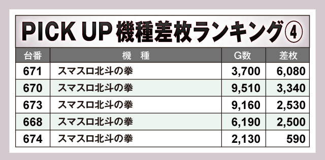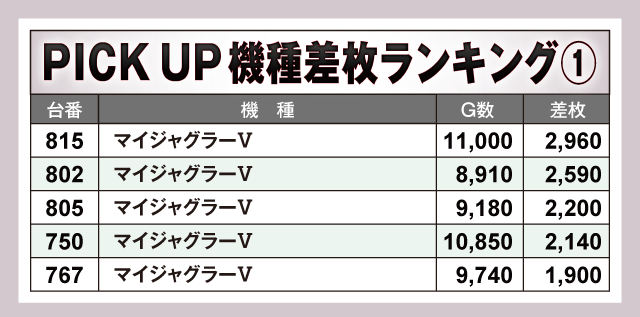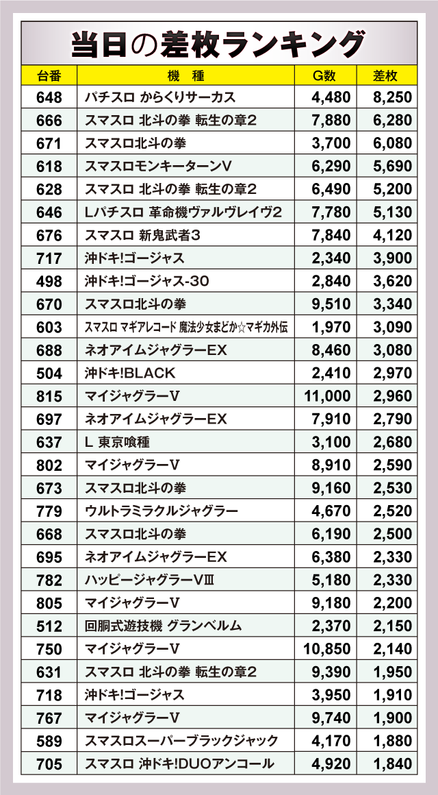 ※差枚数順に掲載しています。