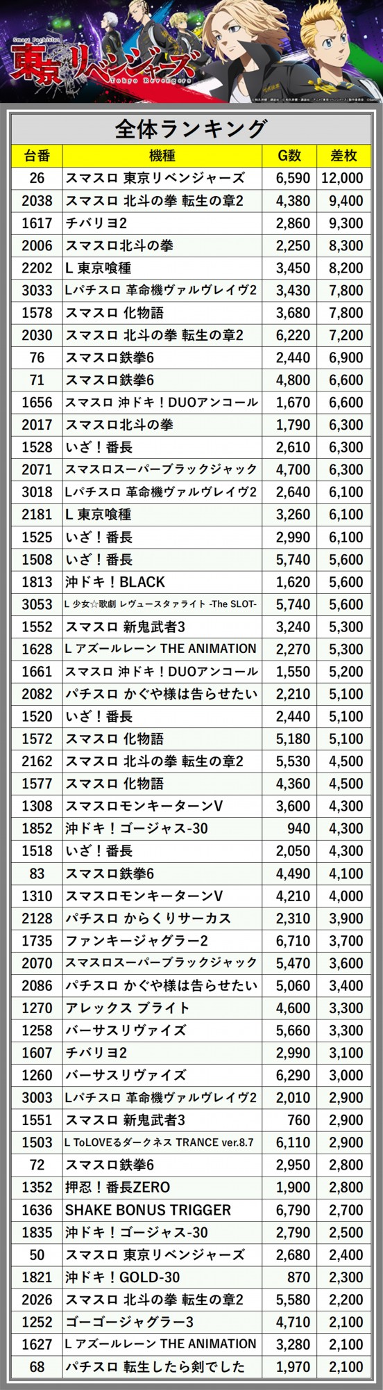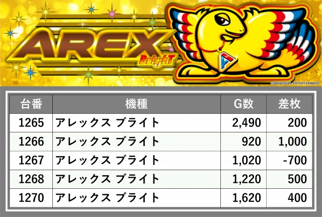 厳選された取材対象機種をはじめ、その他スロット全体から好記録が飛び出した!プレイヤーが楽しんだ1日を下記データにて振り返ってみて欲しい。