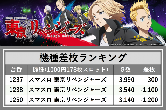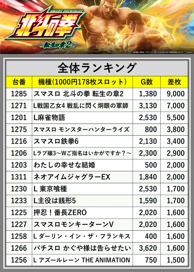 ※差枚数順に掲載しています