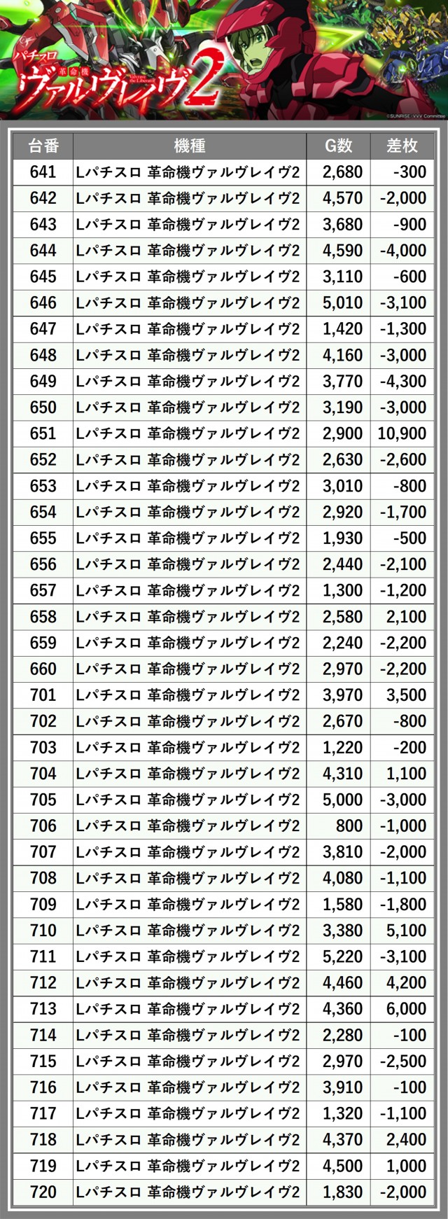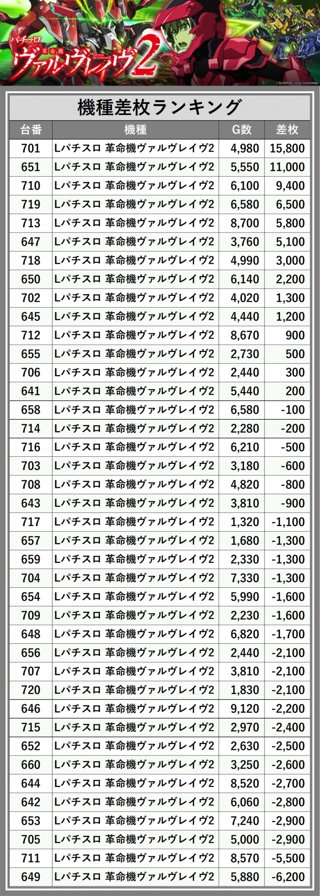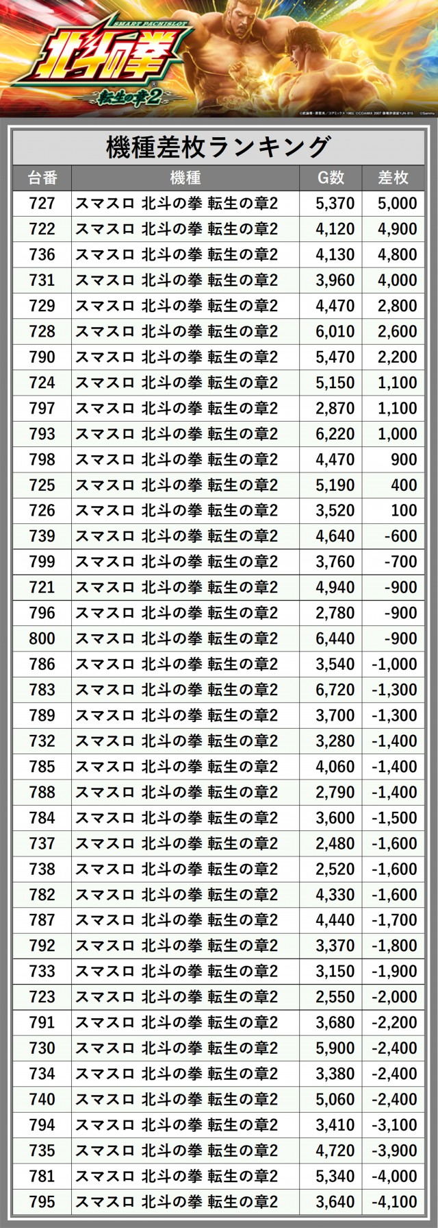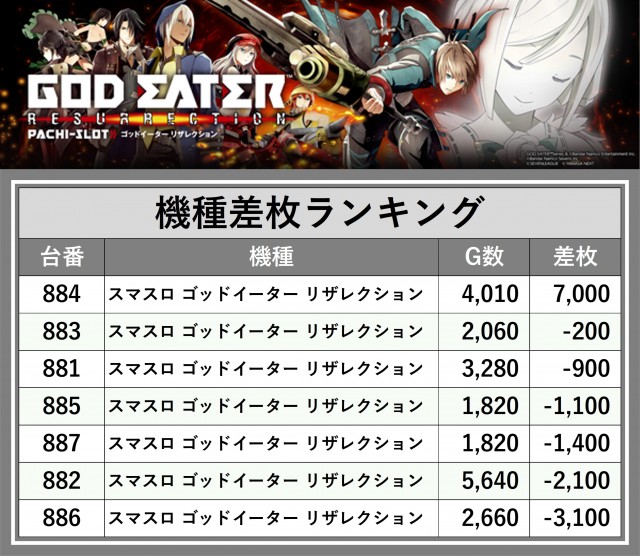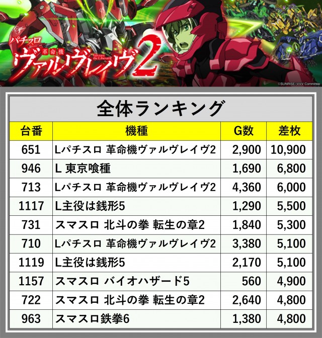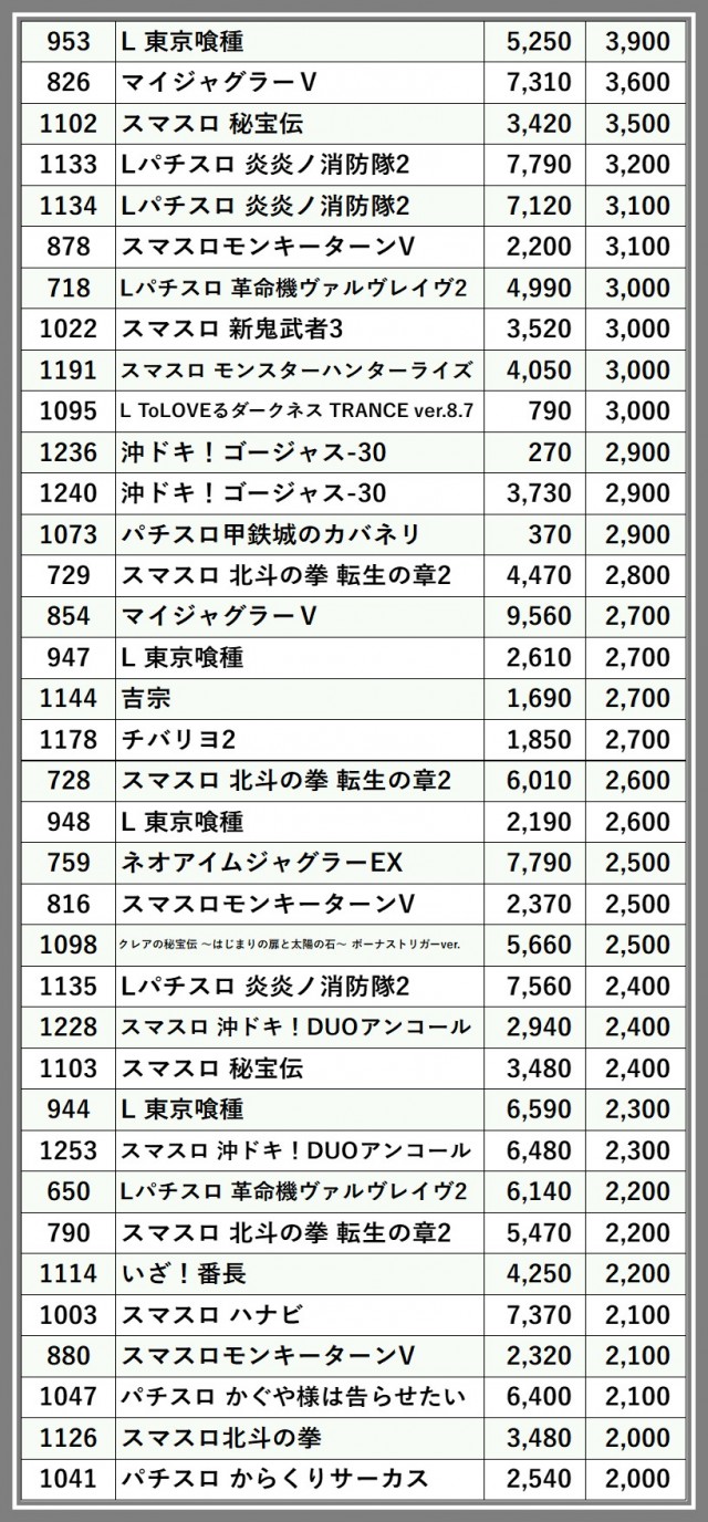 ※差枚数順に掲載しています