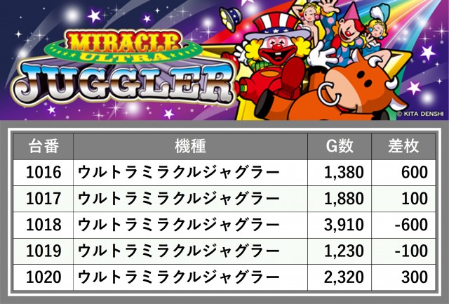 厳選された取材対象機種をはじめ、その他スロット全体から好記録が飛び出した!プレイヤーが楽しんだ1日を下記データにて振り返ってみて欲しい。