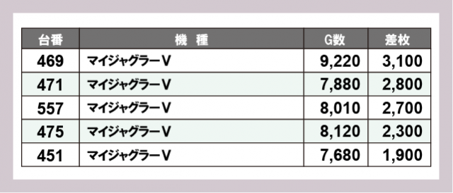 ※差枚数順に掲載しています