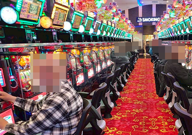 「ネオアイムジャグラーEX」や「ゴーゴージャグラー3」でも、プレイヤーたちは楽しそうな様子。