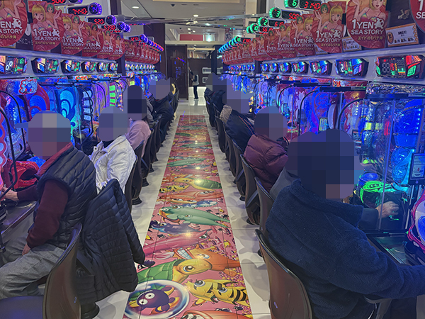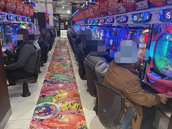 13時ごろの1円パチンコでは、「PA大海物語5 Withアグネス・ラム」や「PA新海物語」といった甘海シリーズのシマから活気が感じられ、プレイヤーのイキイキとした表情が印象に残っている。
