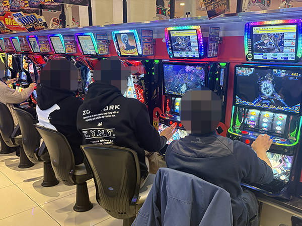「ネオアイムジャグラーEX」や「ゴーゴージャグラー3」といったジャグラーシリーズも大盛り上がり。機種の醍醐味を味わうプレイヤーを複数目にしている。