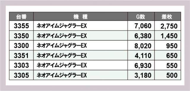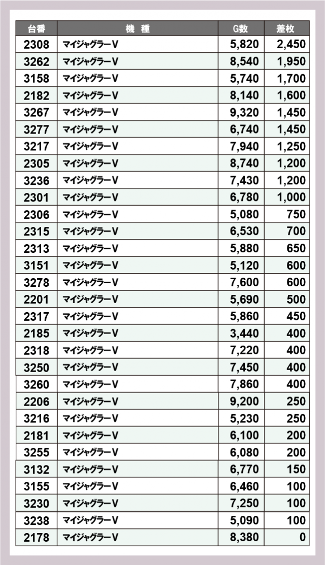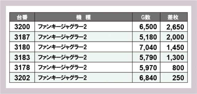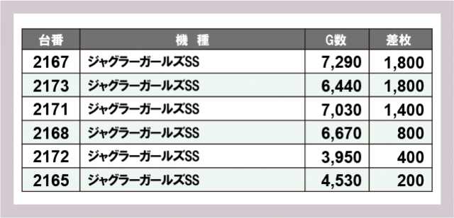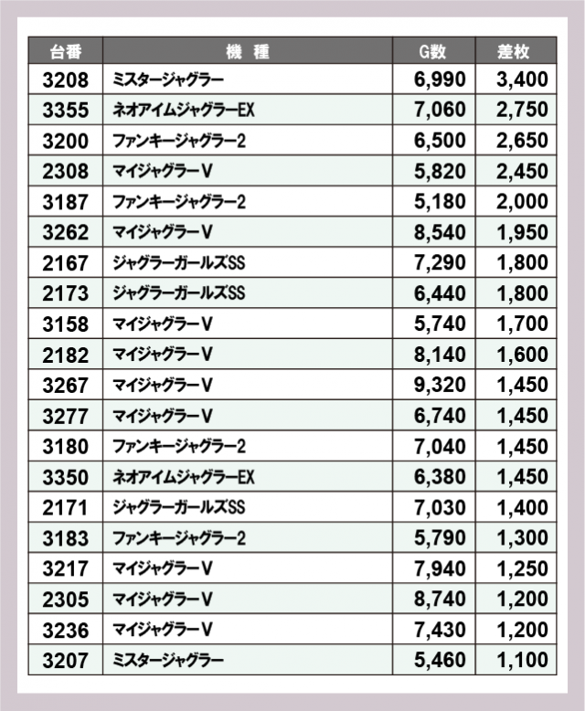 ジャグラー差枚ランキング