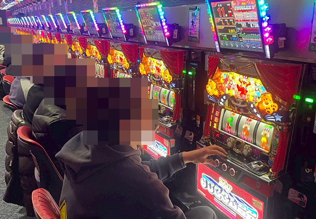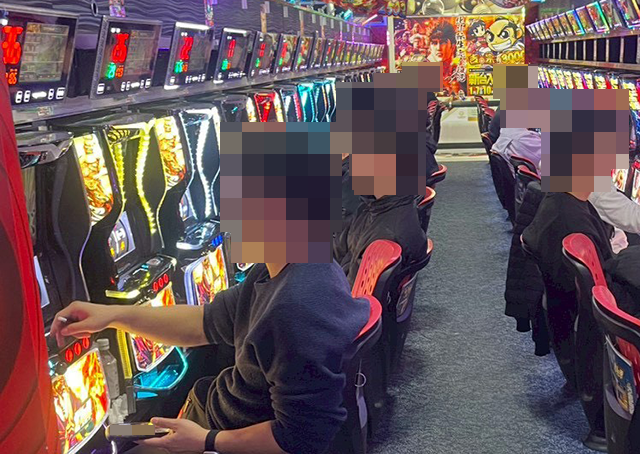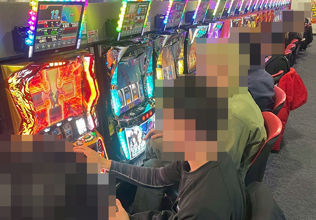 最新機種も注目度が高く、新台の「Lパチスロ 炎炎ノ消防隊2」が満席。