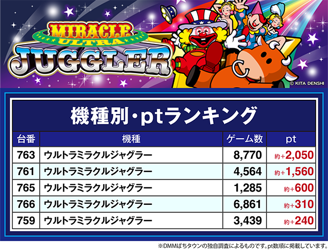 「ウルトラミラクルジャグラー」にも、約+2,000ptを超えた台アリ!!