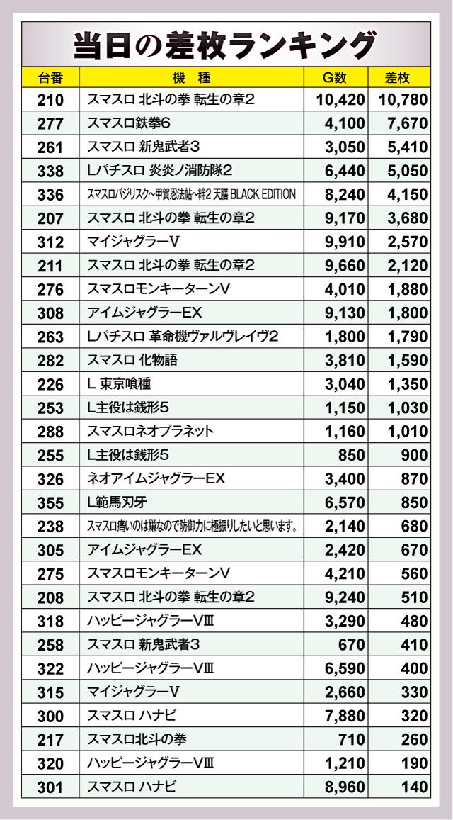 その他ピックアップ全台データ