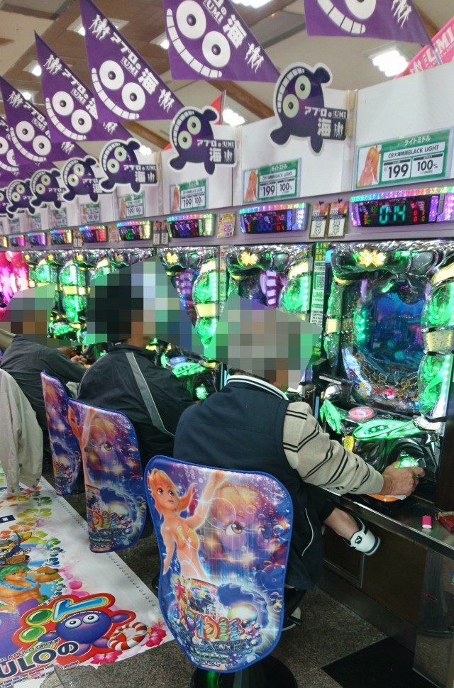そう、海物語だ。店内に設置された海シリーズは、4円パチンコ、1円パチンコ合わせて10種類以上! 常夏を感じさせる店内の装飾と、ユーザーたちの楽しそうに遊技する姿は、冬の到来を感じさせない活気で満ちていた。