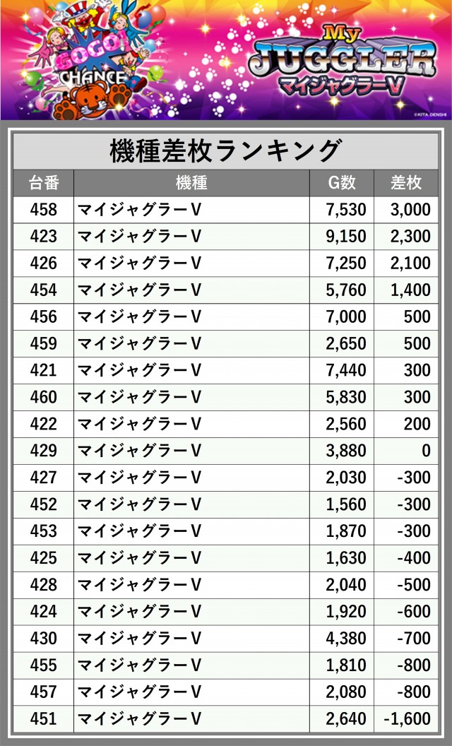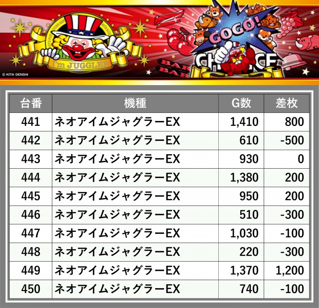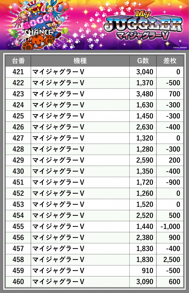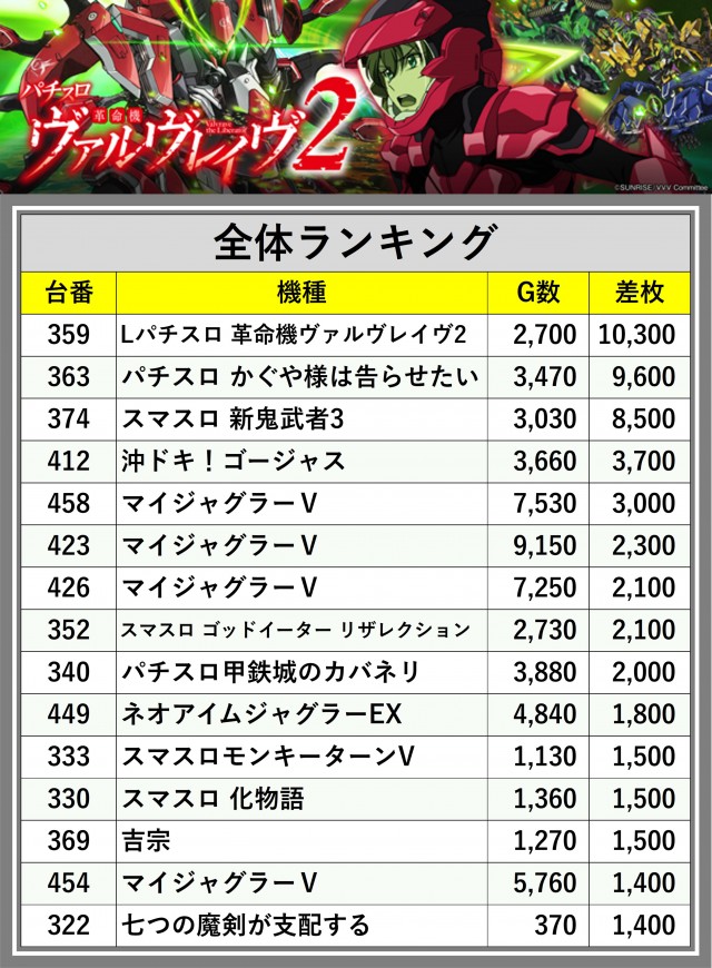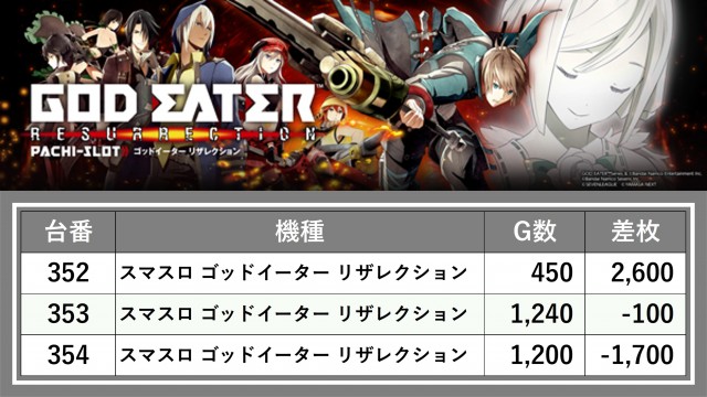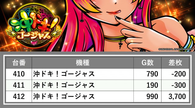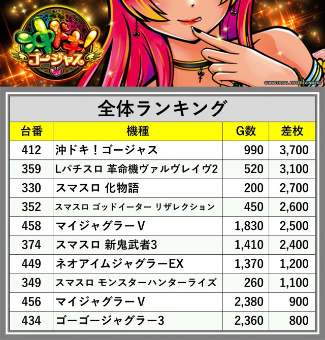 厳選された取材対象機種をはじめ、その他スロット全体から好記録が飛び出した!プレイヤーが楽しんだ1日を下記データにて振り返ってみて欲しい。
