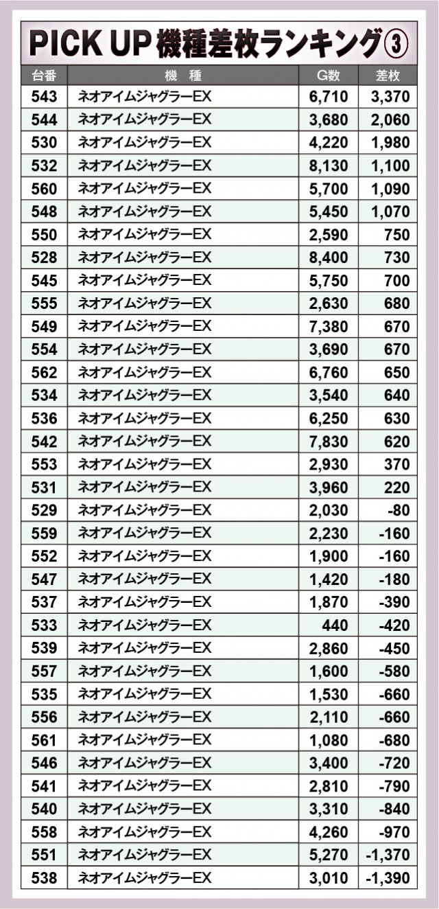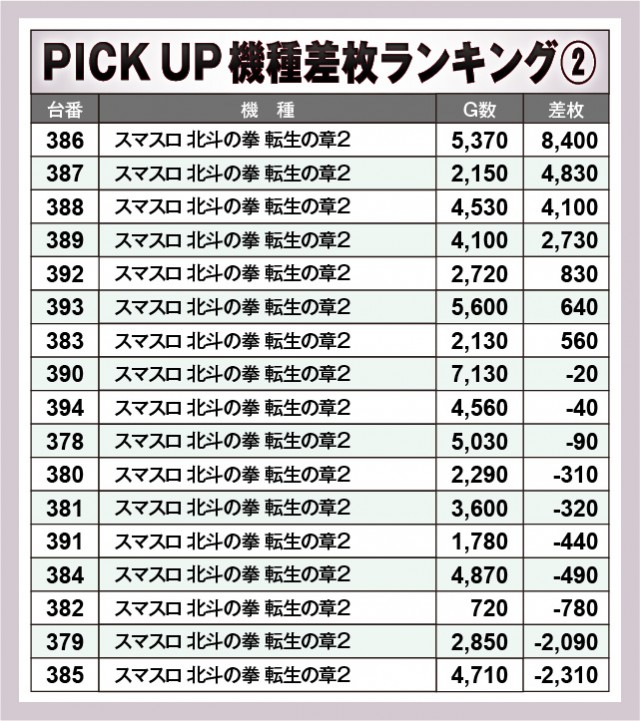 ※差枚数順に掲載しています。