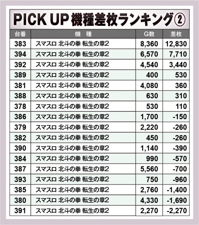 ※差枚数順に掲載しています。