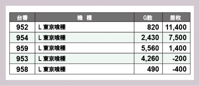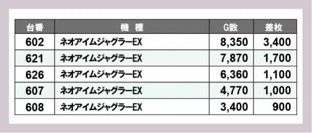 ※差枚数順に掲載しています