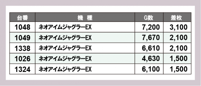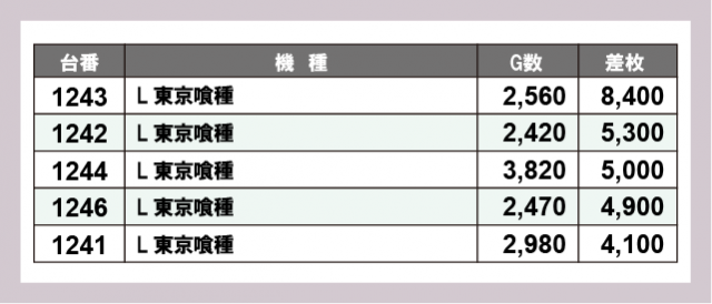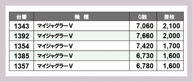 ※差枚数順に掲載しています