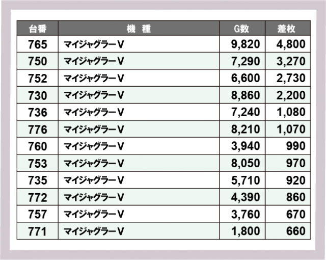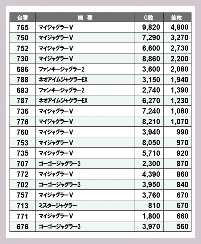 ジャグラー差枚ランキング