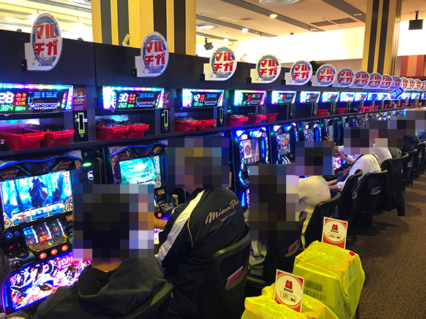 14時ごろの4円パチンコをみてみると、朝から支持を受けている「CRヱヴァンゲリヲン 2018年モデル」をはじめ、いくつもの機種に笑顔が広がっていた。