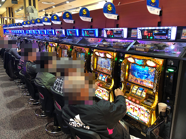 パチスロで遊技をはじめるプレイヤーも多く、21.27円パチスロの「バジリスク~甲賀忍法帖~絆」や「押忍!番長3」が満席となっていた。