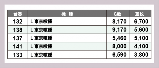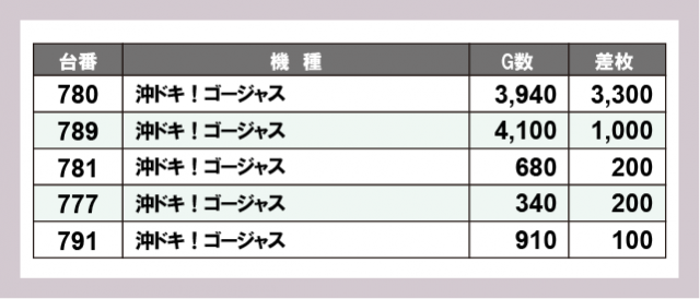 ※差枚数順に掲載しています