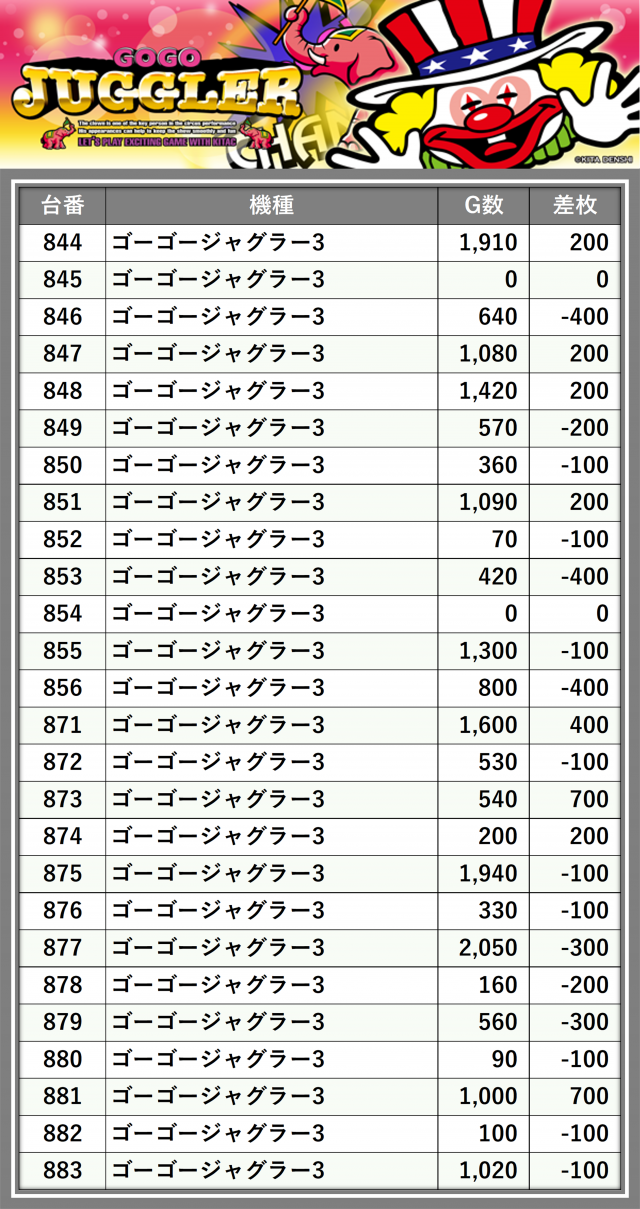 厳選された取材対象機種をはじめ、その他スロット全体から好記録が飛び出した!プレイヤーが楽しんだ1日を下記データにて振り返ってみて欲しい。