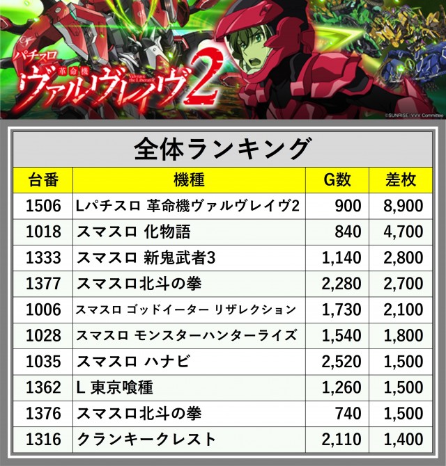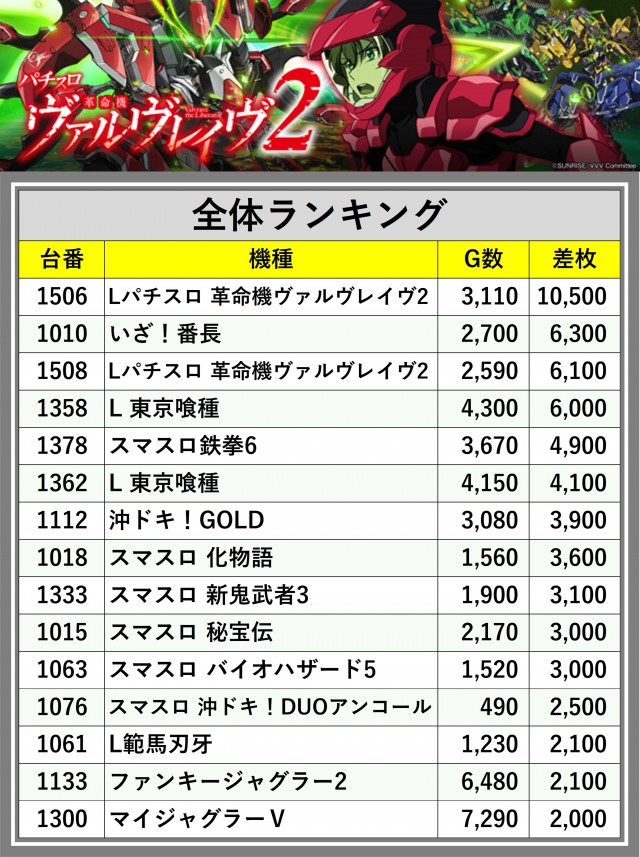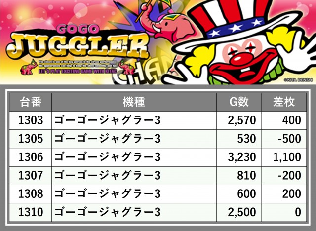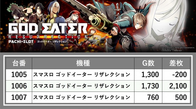 厳選された取材対象機種をはじめ、その他スロット全体から好記録が飛び出した!プレイヤーが楽しんだ1日を下記データにて振り返ってみて欲しい。