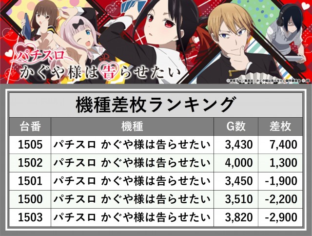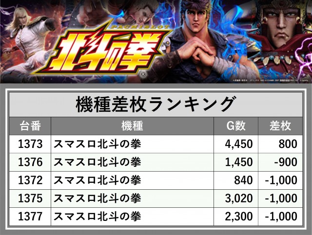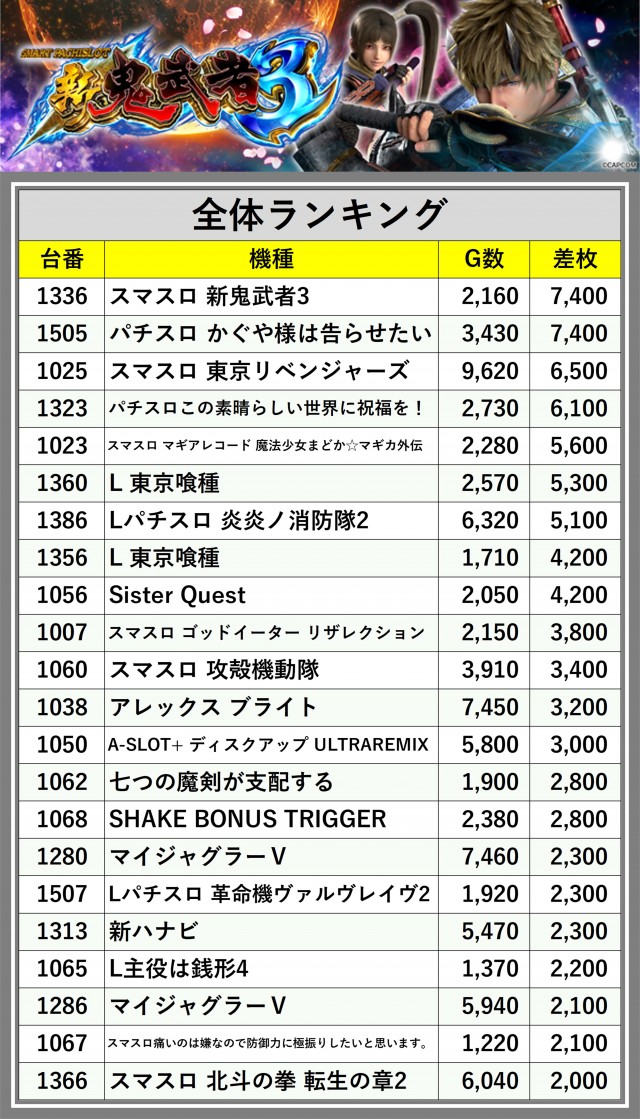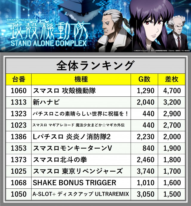 ※差枚数順に掲載しています