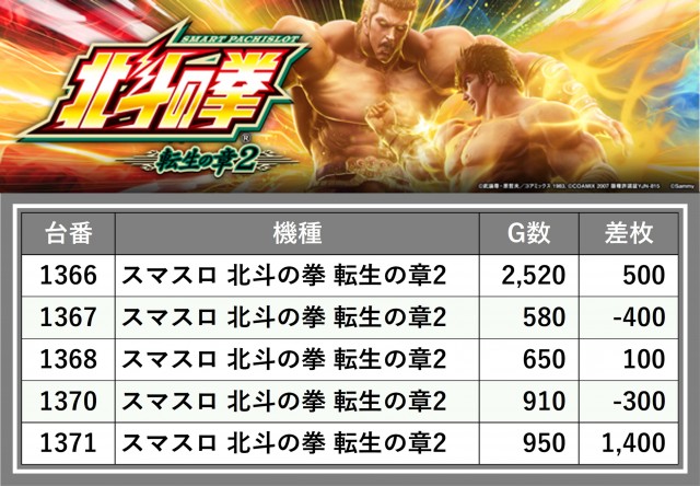 ※台番順に掲載しています