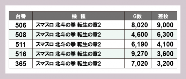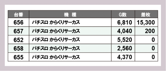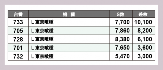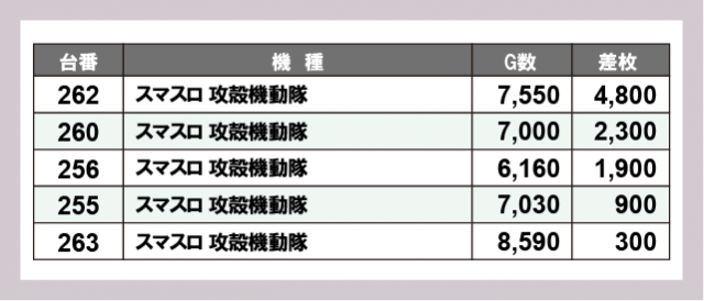 ※差枚数順に掲載しています