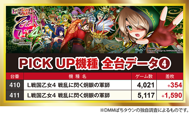 2台設置の「L戦国乙女4 戦乱に閃く炯眼の軍師」は、全台がプラス。