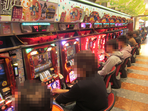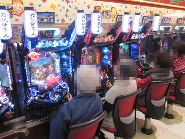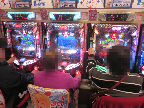 14時ごろの1円パチンコでは、「CRスーパー海物語IN JAPAN 319バージョン」や「CRぱちんこ必殺仕事人Ⅴ」といったミドルタイプが好評。機種のポテンシャルを上手く引き出しているプレイヤーが多く、随所で笑顔も見られた。