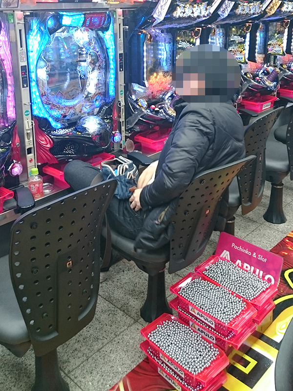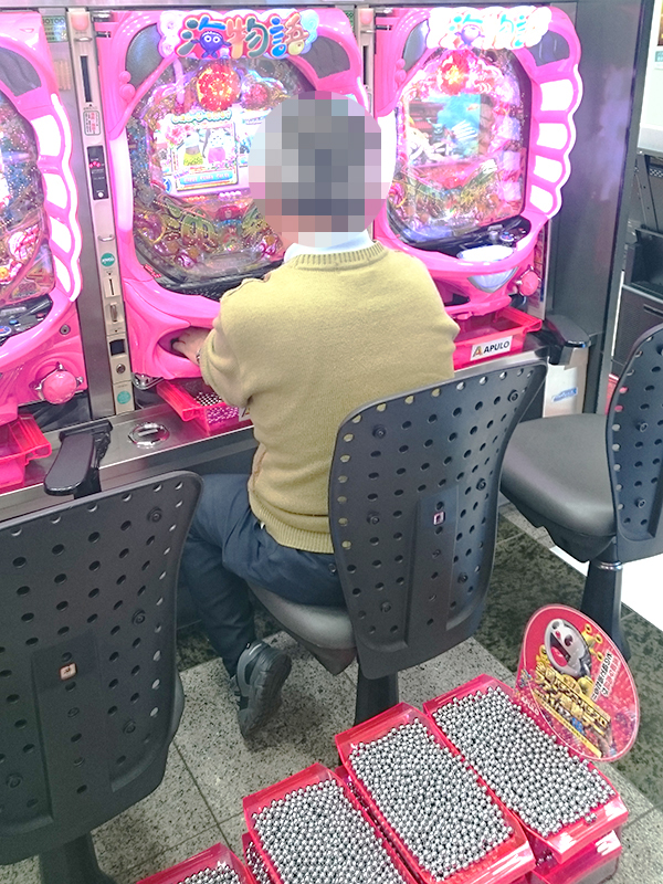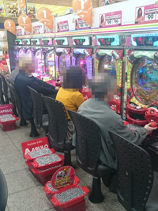 15時半過ぎに4円パチンコをチェックすると、「CRスーパー海物語IN沖縄4」や「CR喰霊-零-」、「CRぱちんこ必殺仕事人Ⅴ 豪剣」などで、機種性能を上手く引き出しているプレイヤーたちと遭遇。周囲から注目を集めていた。