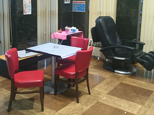 レストスペースにはマッサージチェアを完備。誰もがゆっくりとリフレッシュできる空間が整っていた。