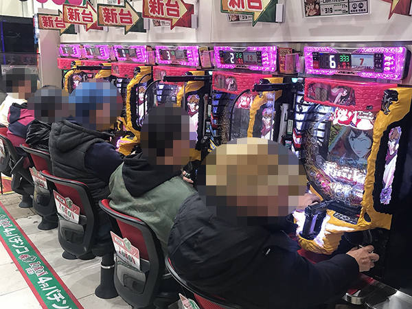 1000円/960玉パチンコも機種を問わず高稼働。「CRルパン三世~Lupin The End~」や「ぱちんこCR北斗の拳7 転生」などで活気のあるシーンを目にしている。