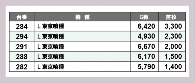 ※差枚数順に掲載しています