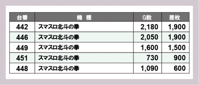 ※差枚数順に掲載しています