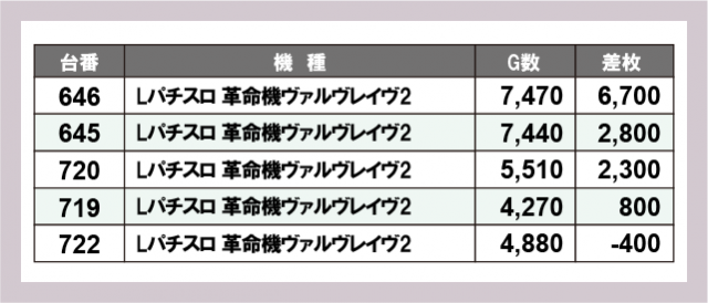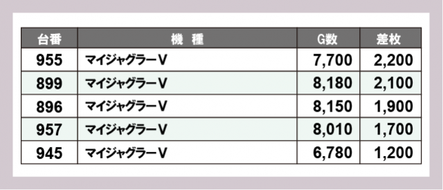 ※差枚数順に掲載しています