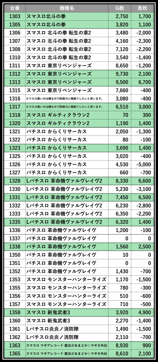 その結果の中から、ぱちタウンが注目すべきポイントを厳選してユーザーにお届け!プレイヤーが楽しんだ一日を下記データにて振り返ってみて欲しい。