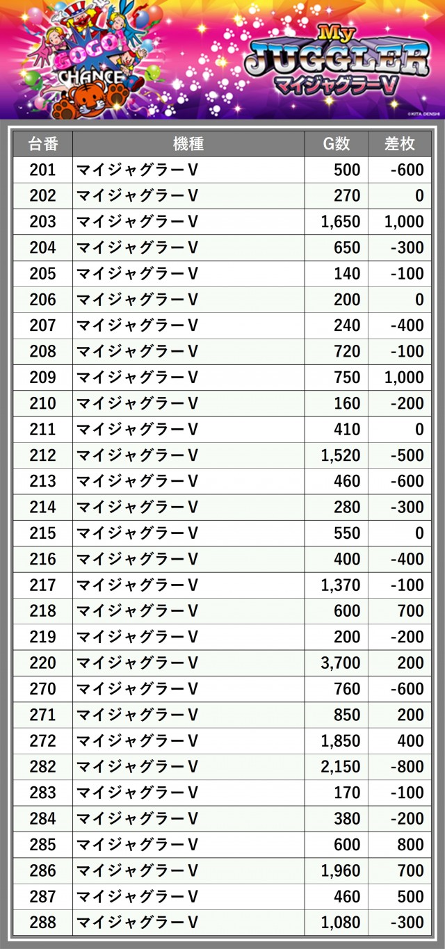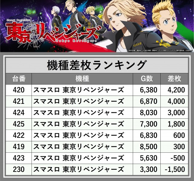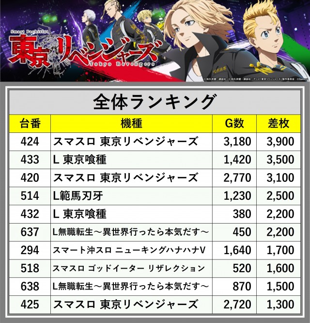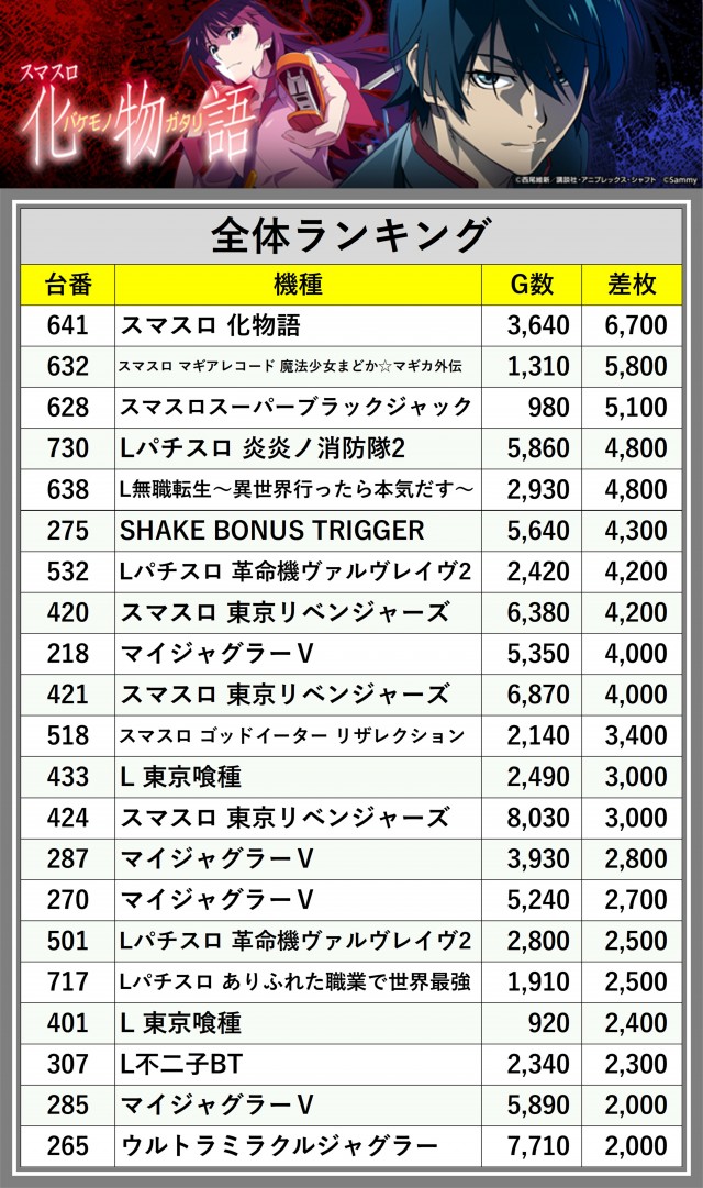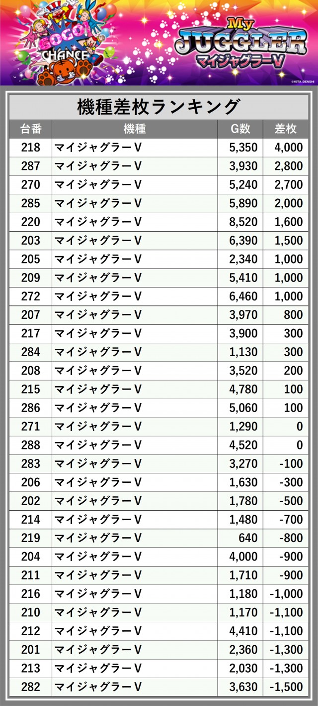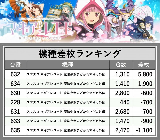 ※差枚数順に掲載しています
