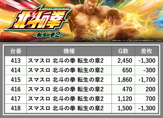 厳選された取材対象機種をはじめ、その他スロット全体から好記録が飛び出した!プレイヤーが楽しんだ1日を下記データにて振り返ってみて欲しい。