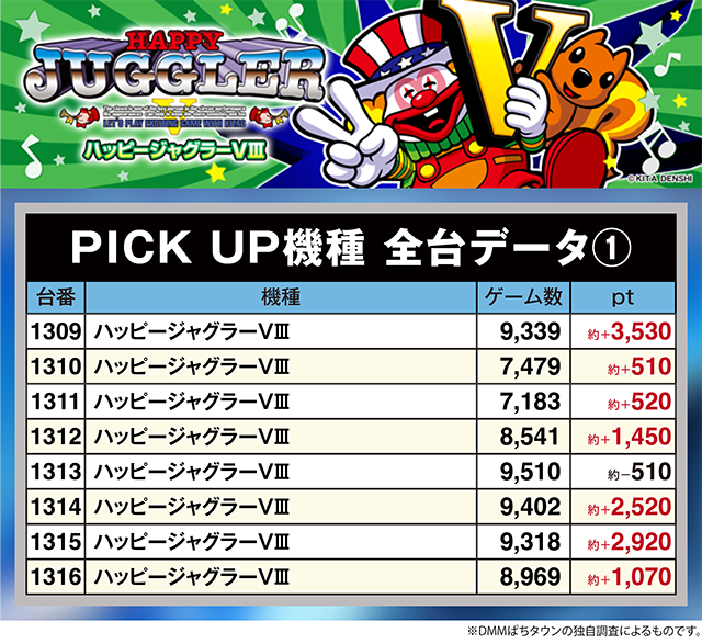 PICK UP機種・全台データ