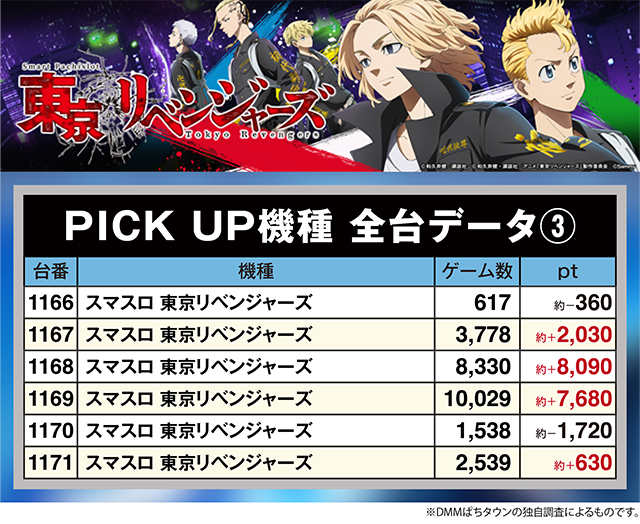 「スマスロ 東京リベンジャーズ」の1168番台が約+8,090pt!