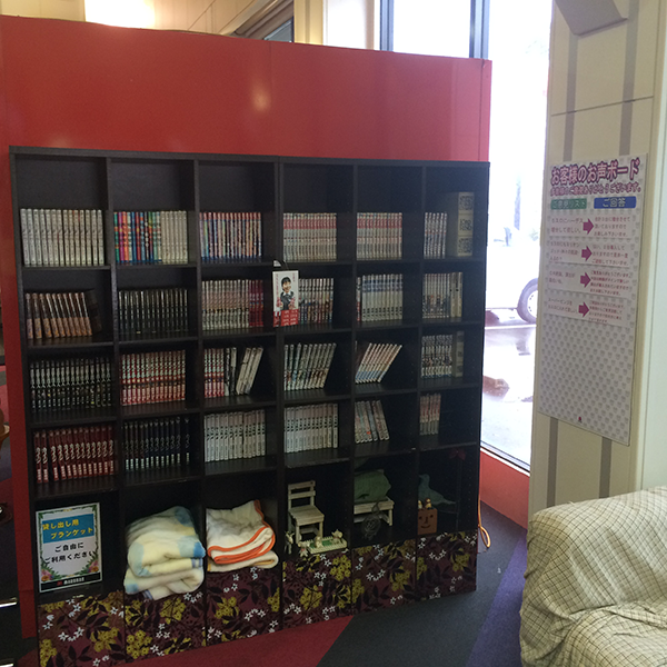 パチンココーナーに設けられた禁煙スペースやマンガ・雑誌、マッサージチェアが置かれたレストスペースなど、充実した環境も整っている「マルハン彦根店」。