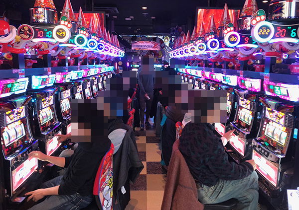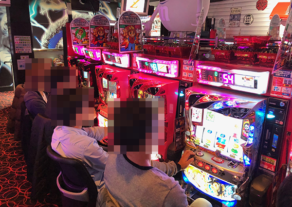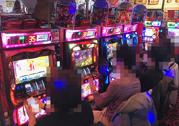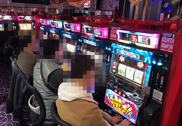 14時半ごろのホール内で、ひときわ目立っていた機種が「押忍!番長3」だ。フル稼働となっているだけでなく、笑顔のプレイヤーも多数。機種の性能を最大限に引き出しているといった姿が印象に残っている。