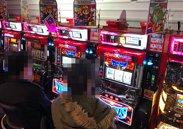 定番機種であるジャグラーシリーズも、空席がほとんどみあたらないといった状況。「マイジャグラーⅡ」や「マイジャグラーⅢ」などでプレイヤーが活躍をみせており、シマ内には笑顔があふれていた。