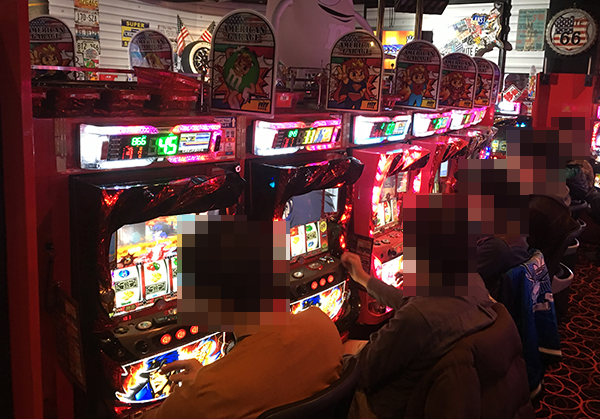 にぎやかなムードの「バジリスク~甲賀忍法帖~絆」や「ミリオンゴッド-神々の凱旋-」でも、心から遊技を楽しんでいる様子がうかがえた。