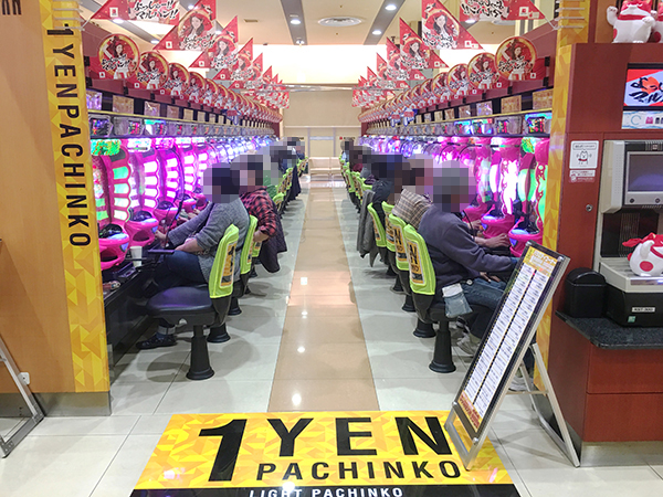 1円パチンコは全体的に高稼働。特に海物語シリーズの人気は高く、空き台を見つけるのがやっとという状況だった。