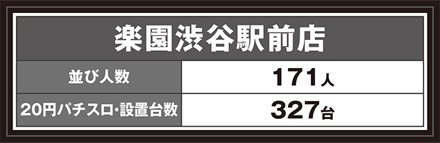 2月15日、東京都渋谷区にある「楽園渋谷駅前店」へと向かった。今回の取材は、「徹底対抗取材」だ。エリアトップクラスの盛り上がりを求めて、ホール内を調査していこう。