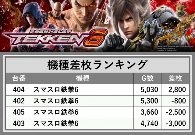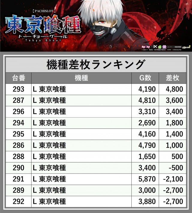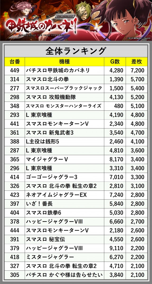 ※差枚数順に掲載しています