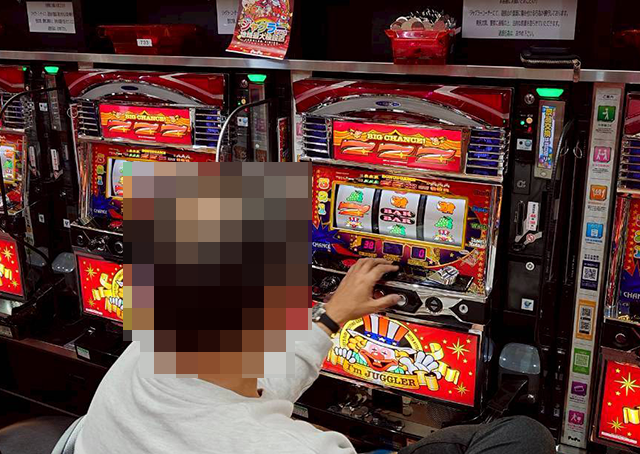 笑顔で遊技をおこなう姿からは、パチスロの魅力を堪能していることもうかがえた。